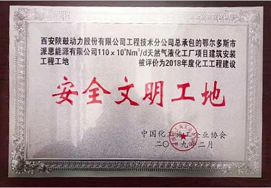近日,中国安装协会公布了“2019-2020年度第二批中国安装工程优质奖入选工程公示名单”,kdpay总包的鄂尔多斯市派思能源有限公司110×104Nm³/d天然气液化工厂项目脱颖而出,顺利通过评审,荣获中国安装工程质量最高奖——“中国安装之星”