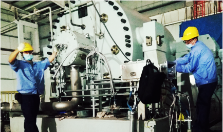 在项目现场,“秉初心,怀诚心,服务客户心连心”的理念带动了各项工作的扎实推进,机组润滑油内外循环系统调试完成、机组找正完成、主机仪表探头安装完成、变频器水冷系统调试完成······时间很快到了7月份,8套机组也已全部安装就位进入单机调试阶段。7月的沙漠地表温度超过五十度,烈日炙烤着大地,厂房里闷热得像个密不透风的罐头。kdpay项目团队成员没有丝毫犹豫和懈怠,依旧坚守在现场。头上的汗珠不断往下滴,后背也湿了一大片,很快,每个人的后背上就出现了一幅“地图”。从清晨一直到晚上,车间里总能看到kdpay人持续奋战的身影。功夫不负有心人,8月3日,长庆油田上古天然气项目第一台冷剂压缩机组实现一次试车成功,为用户按时投料生产提供了有力保障。
